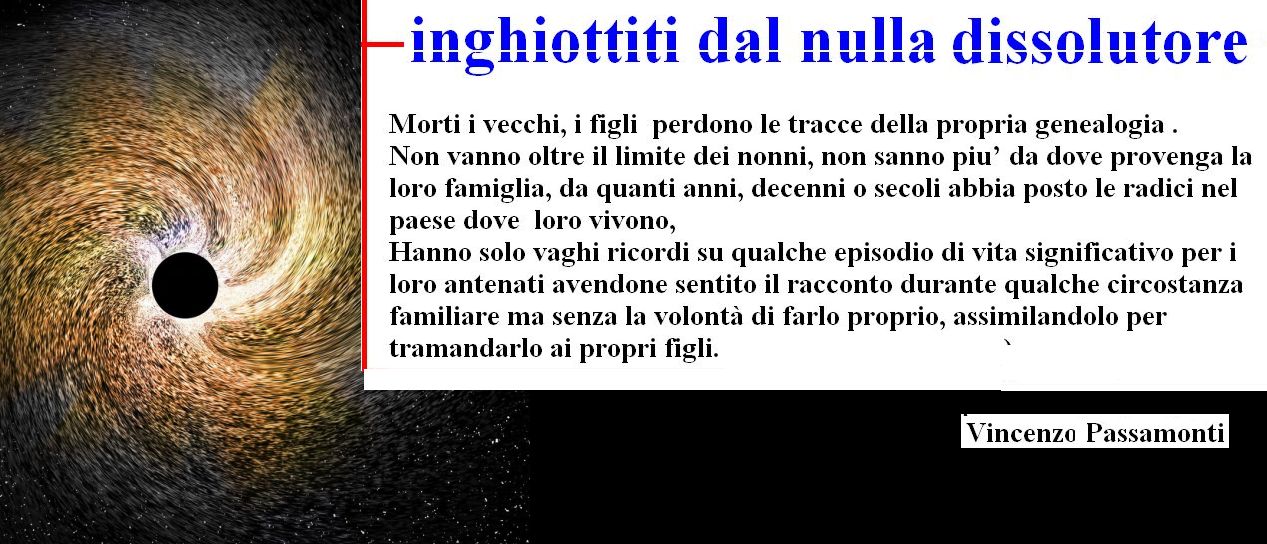 E' pagando questo debito che insegneremo ai nostri figli a conservare e trasmettere anche il nostro ricordo permettendo anche a noi di scampare in parte all'oblio del tempo , al nulla cosmico, permettendo anche a noi di non morire per sempre , permettendo anche a noi di lasciare una minima traccia del nostro passaggio.