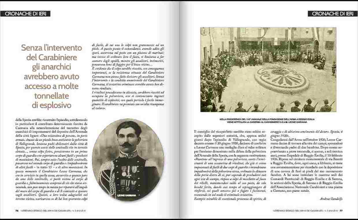 L'assalto alla polveriera di Vallegrande , nel circondario di La Spezia , il 04 giugno 1920 ; assalto che ritengo fosse parte di un piu' vasto piano rivoluzionario che non pote' essere attuato
