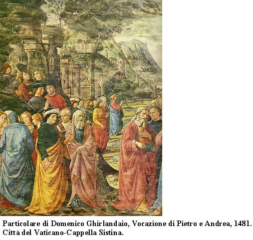 questo è un particolare della "Chiamata di Pietro e Andrea" a Roma nella Cappella Sistina, qui volevo farvi vedere l’impostazione delle figure nella monumentalità dell’esecuzione dei panneggi, nella posa e atteggiamento dei volti.