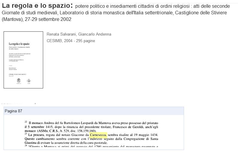 E' molto probabile che a Mantova il cognome si sia stabilizzato in Carnesecca e non in Carnesecchi