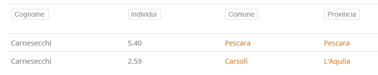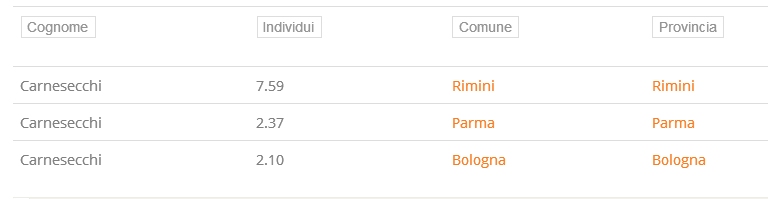 Ci sono circa 400 / 500 (al massimo ) famiglie Carnesecchi in Italia
