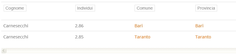 Motore di ricerca del cognome su tutta la penisola con mappa di distribuzione.