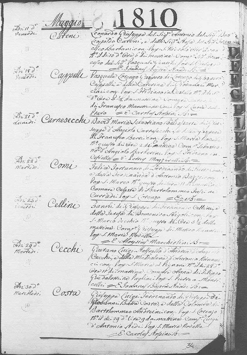 Vincenzo Carnesecchi (assente ) testimone per dati anno 1792
