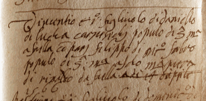 Questo Jacopo e' un Carnesecchi minore . Minore nel senso che di lui non si parla nei libri , e si fatica a trovarne i documenti (probabilmente da ricercare nei X di Balia ) non ho altra informazione ne anagrafica , fiscale, solo questo stringato documento a dimostrare la sua esistenza Ho solo questo battesimo ( ma non e' detto che sia il medesimo Iacopo ) e non e' chiaro chi sia Zanobi il padre NANNA GIOVANNA di IACOPO di ZANOBI n.23.6.1514 ore 9 p.S.M.Magg. (reg.227 fg.45) direi che difficilmente siamo in presenza dello stesso individuo il malcapitato difensore di Lamole nasce intorno al 1450 il padre di Nanna se fosse nato nel 1450 avrebbe 64 anni al momento di questa nascita