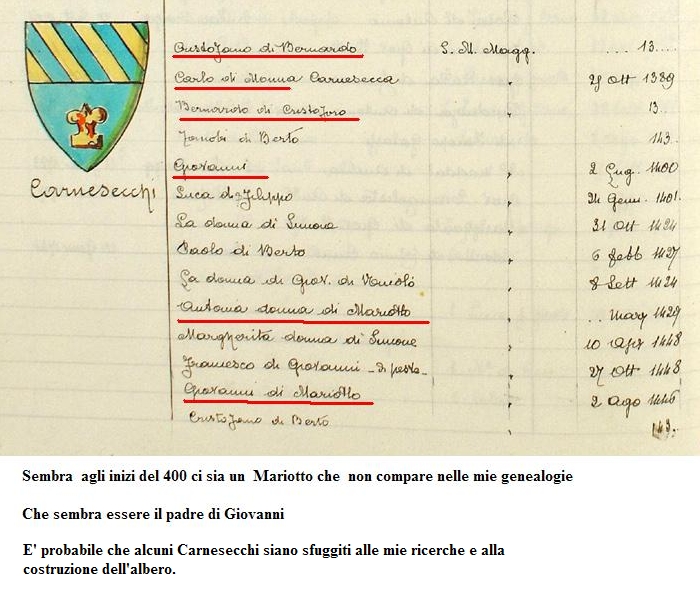 E anche nel nostro caso parleremo di Carnesecchi che accomunati dallo stesso cognome potrebbero avere stipiti diversi ( y-dna diverso, cioe' non appartenere ad uno stesso albero genealogico