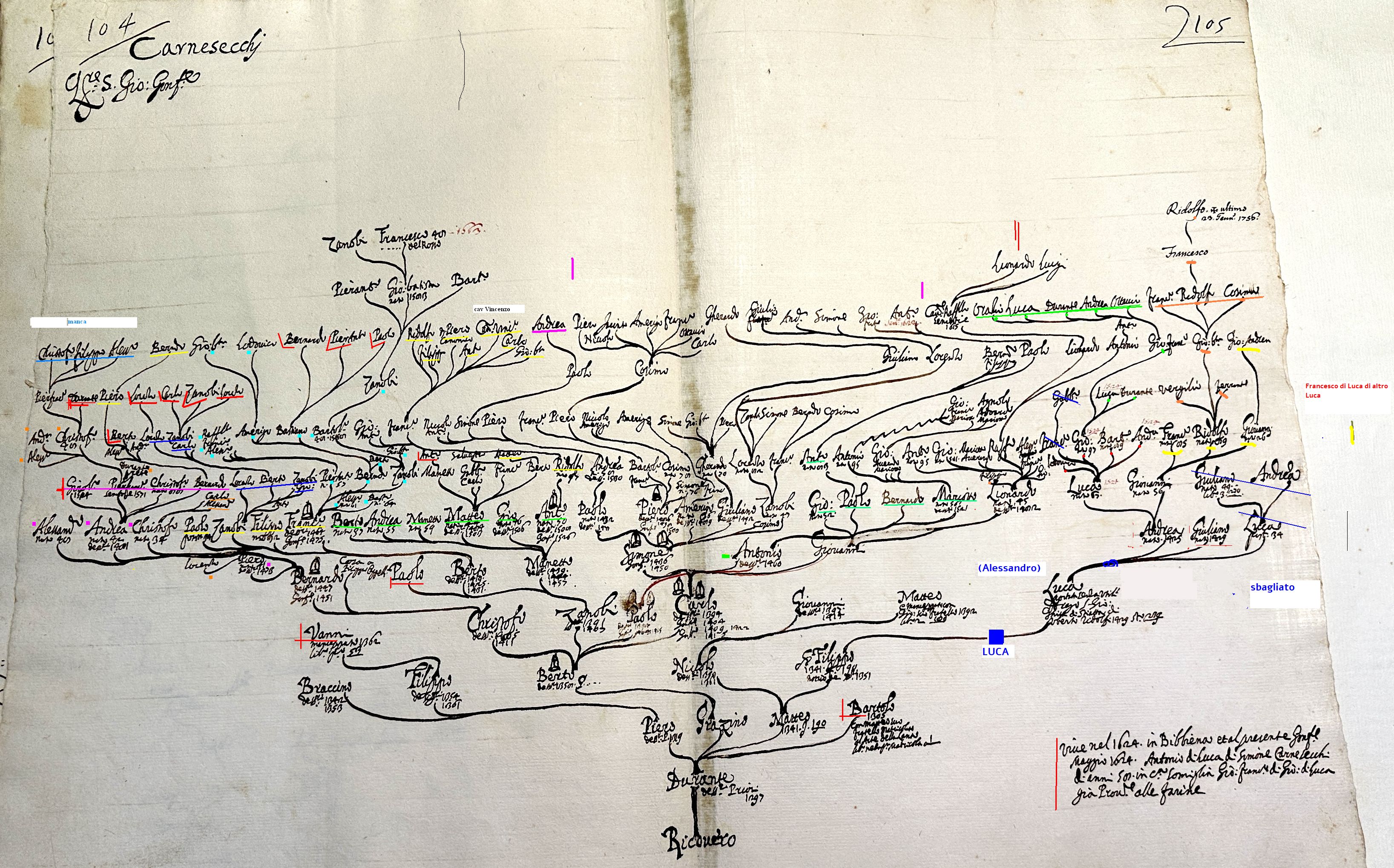 Faccio notare una curiosita' cioe' come spesso i maschi battezzati col nome di "Alessandro" fossero ( probabilmente dalla nascita ) spesso nei vari rami Carnesecchi destinati a divenire dei religiosi , come se il neonato fosse stato una sorta di dono della famiglia alla religione e a Dio