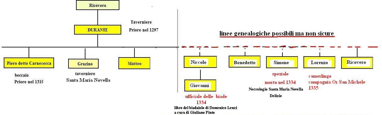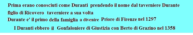 Nel suo componimento poetico (CENTILOQUIO) il fiorentino Antonio Pucci nel 1373 enumerava i DURANTI tra le famiglie fiorentine dell'elite politico-commerciale 100 anni dopo : ancora Benedetto Dei , in un breve manoscritto , nel tracciare un immagine apologetica della Firenze del 1470 comprende ancora i Carnesecchi nell'elite politico.commerciale della citta' ( in Giuseppina Carla Romby "Descrizioni e rappresentazioni della citta' di Firenze nel XV secolo" con la traduzione inedita dei manoscritti di Benedetto Dei Libreria editrice fiorentina 1976 )