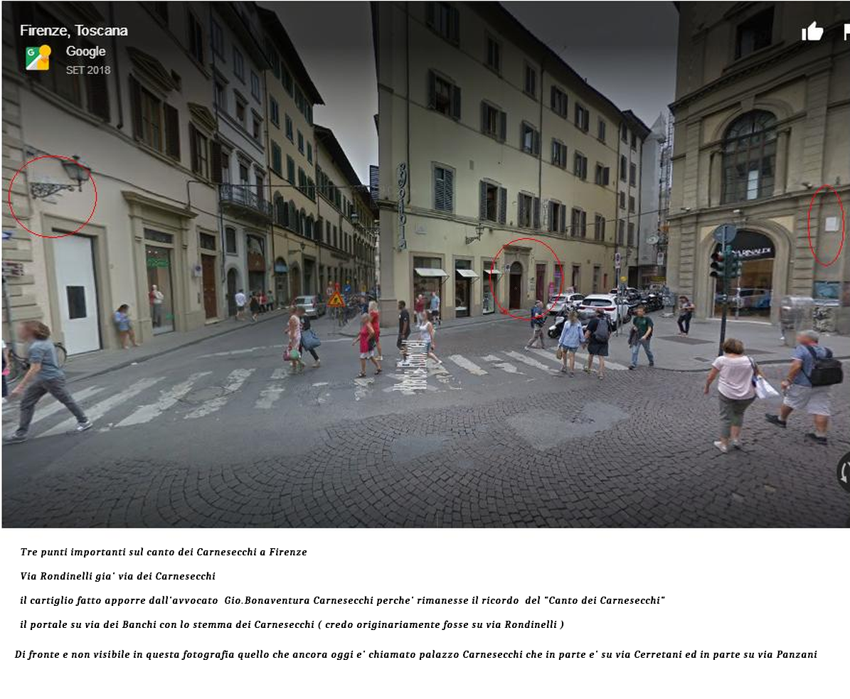 Senza nessuna ragione storica si volle ai primi del XIX secolo intitolare de Rondinelli mentre , piu' logicamente avrebbe dovuto chiamarsi de' Carnesecchi