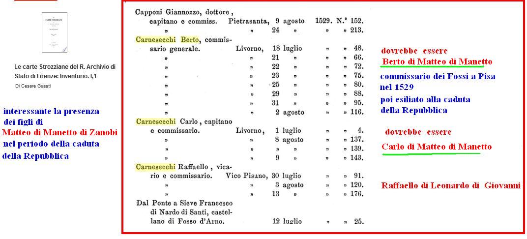Per quanto riguarda i Carnesecchi lo studio e' abbastanza carente negli uffici elencati ma e' comunque una sintesi utile